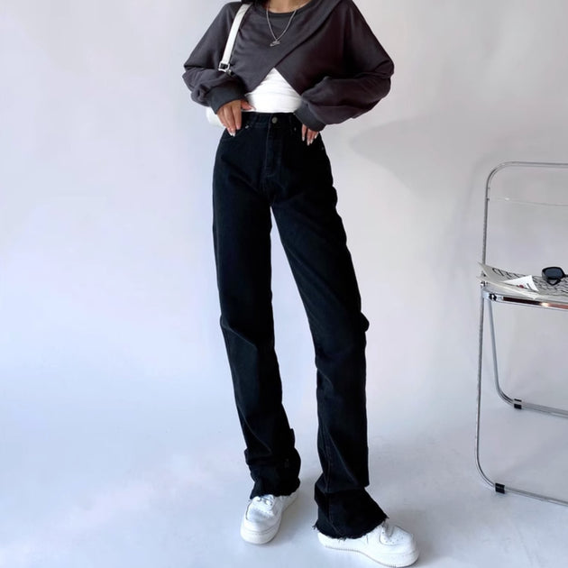 STRAIGHT SIDE SPLIT JEANS